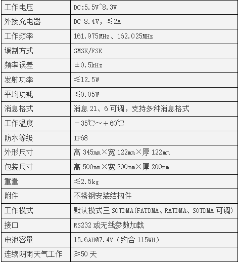 1.集成设计:AIS通信模块与电池结合为一体,实现实用的一体化设计。