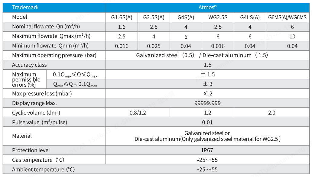Atmos® 膜式燃气表 G1.6|G2.5|G4|WG2.5|G4L|WG6M