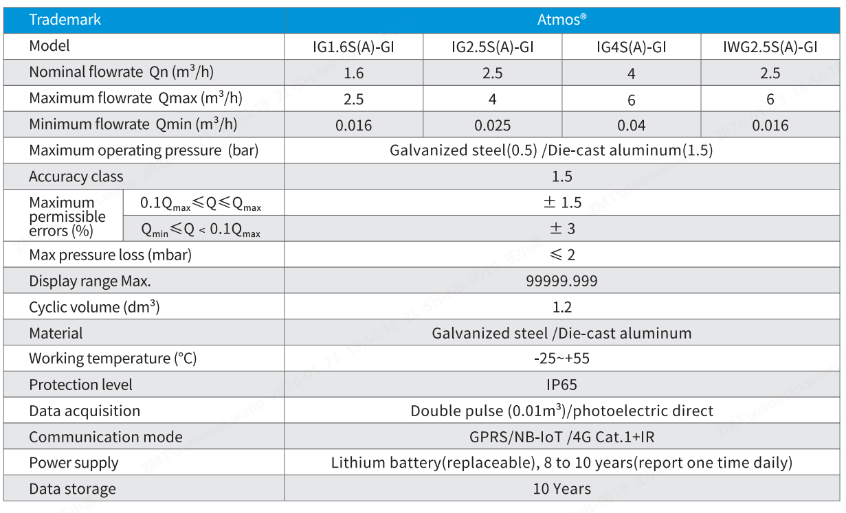 Atmos® GPRS/NB-IoT/4G Cat.1 智能膜式燃气表是基于真兰机械膜式燃气表设计的智能燃气计量产品,集成了内置切断阀和搭载GPRS/NB-IoT/4G Cat.1通信模块的智能控制器。