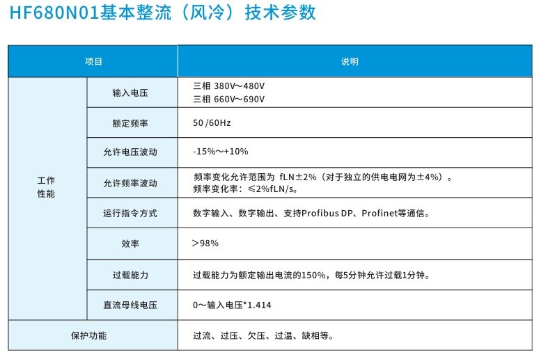 HF680N系列为风冷多传动产品,包含二极管整流单元、回馈整流单元、有源整流单元、逆变器,能满足各种应用需求。 HF680N四象限多传动产品由整流回馈单元和逆变器组成,为系统提供恒定的直流电源及完美的能量回馈,具有卓越的速度与转矩控制性能。整流回馈模块和LCL 滤波单元组成整流回馈单元,实现能量双向流动。可用于港口、盾构、造船、冶金、水泥、石油、矿山等行业。