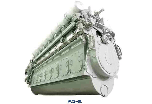 PC2-6 ( B ) 系列产品为公司引 MAN DIESEL & TURBO FRANCE 公司的专利许可证产品;该产品具有结构简单、大修周期长、操作维修简便的特点;可燃烧柴油和最高粘度到700cSt的重油;柴油机功率范围3300~12000kW,发电机组功率蒐围5700~11400kW;柴油机及发电机组应用范围有:船舶主机、船舶电力推进、泵站驱动、核应急发电机组和用电站。