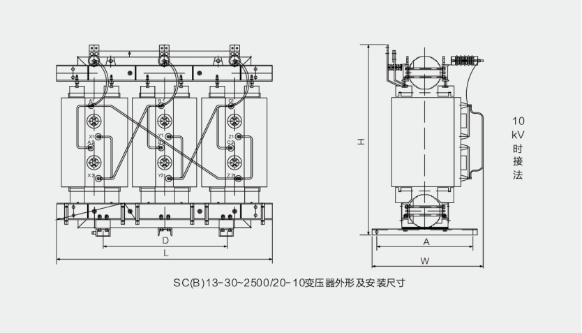 连接片在不同的档位,可实现10kV和20kV电压的转换,分别适用于10kV和20kV系统电压要求。