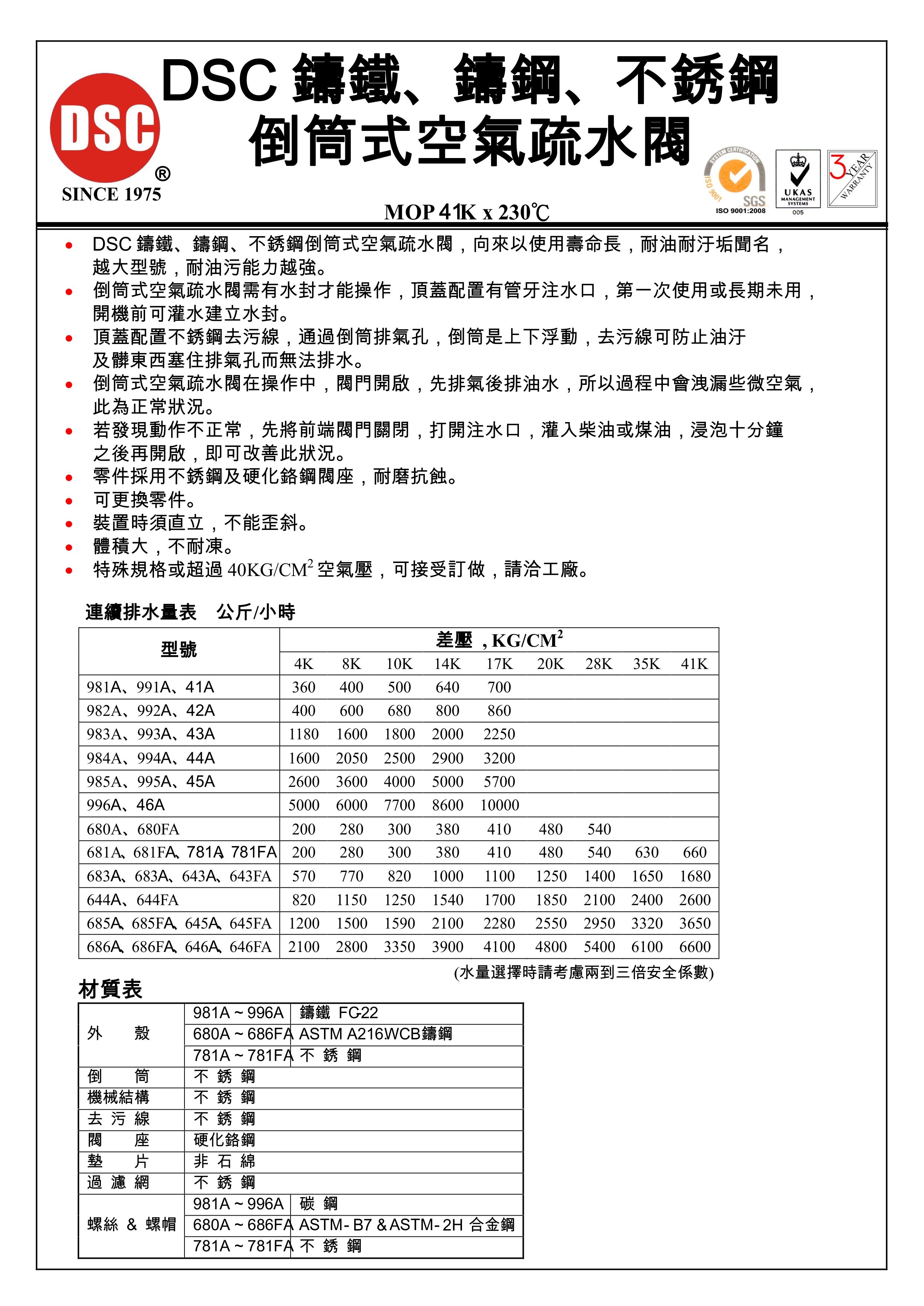 ● DSC 鑄鐵倒筒式蒸汽疏水閥,向來以高效節能購置成本低及