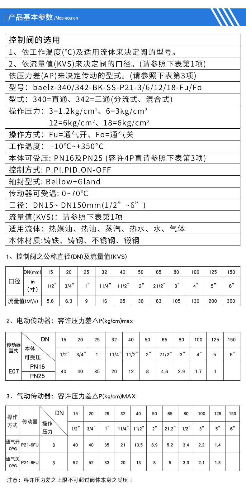 2.性能选型:①依工作温度(℃)及适用流体选择控制阀型号。