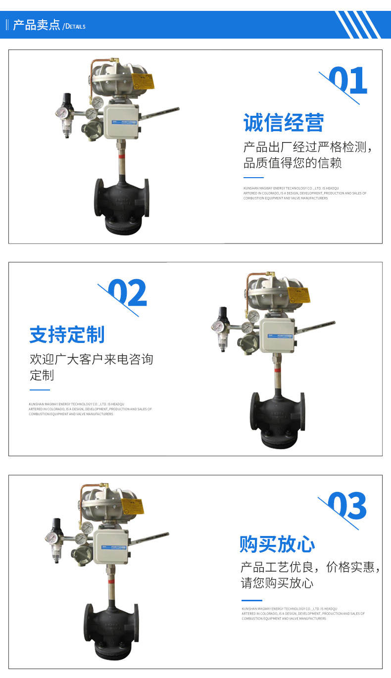 5.阀体材质:不锈钢SUS304/铸钢WCB。