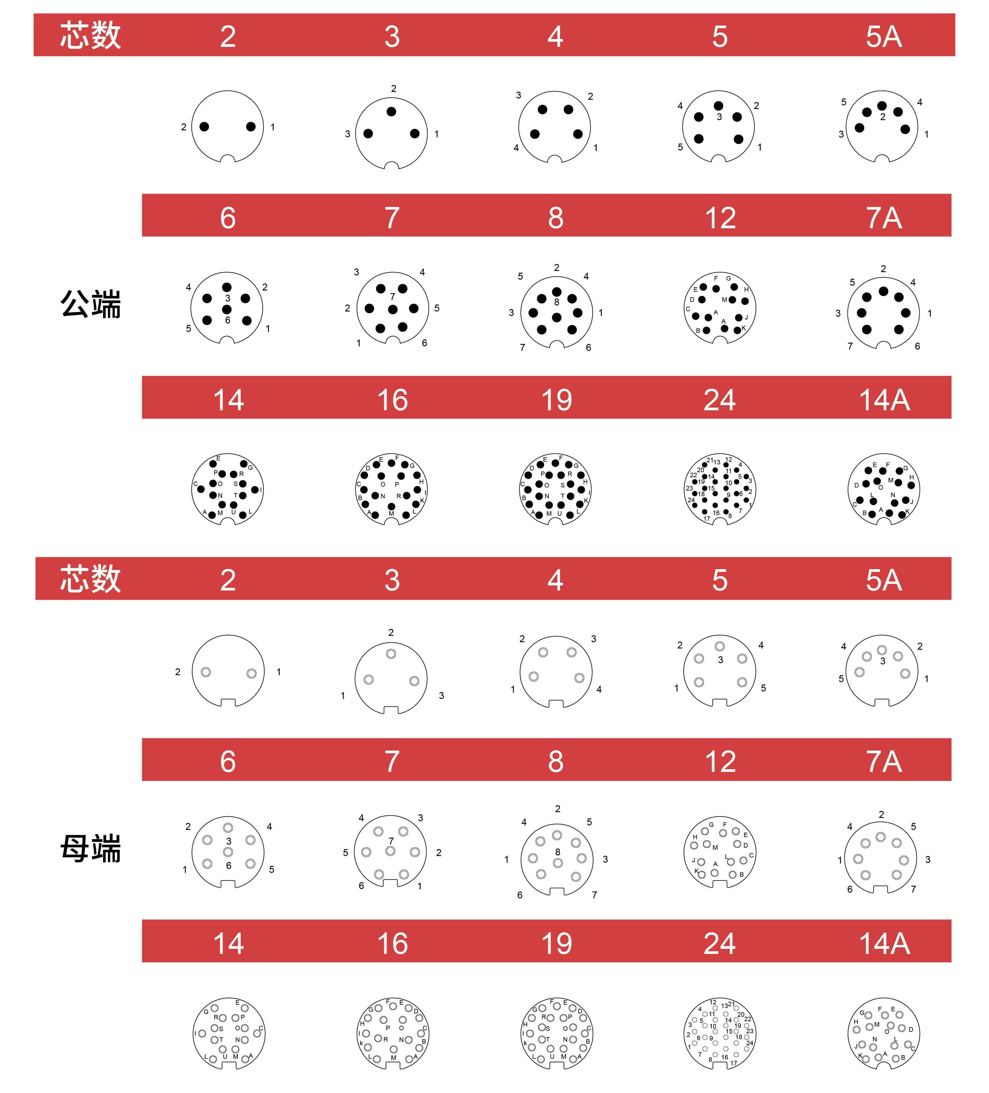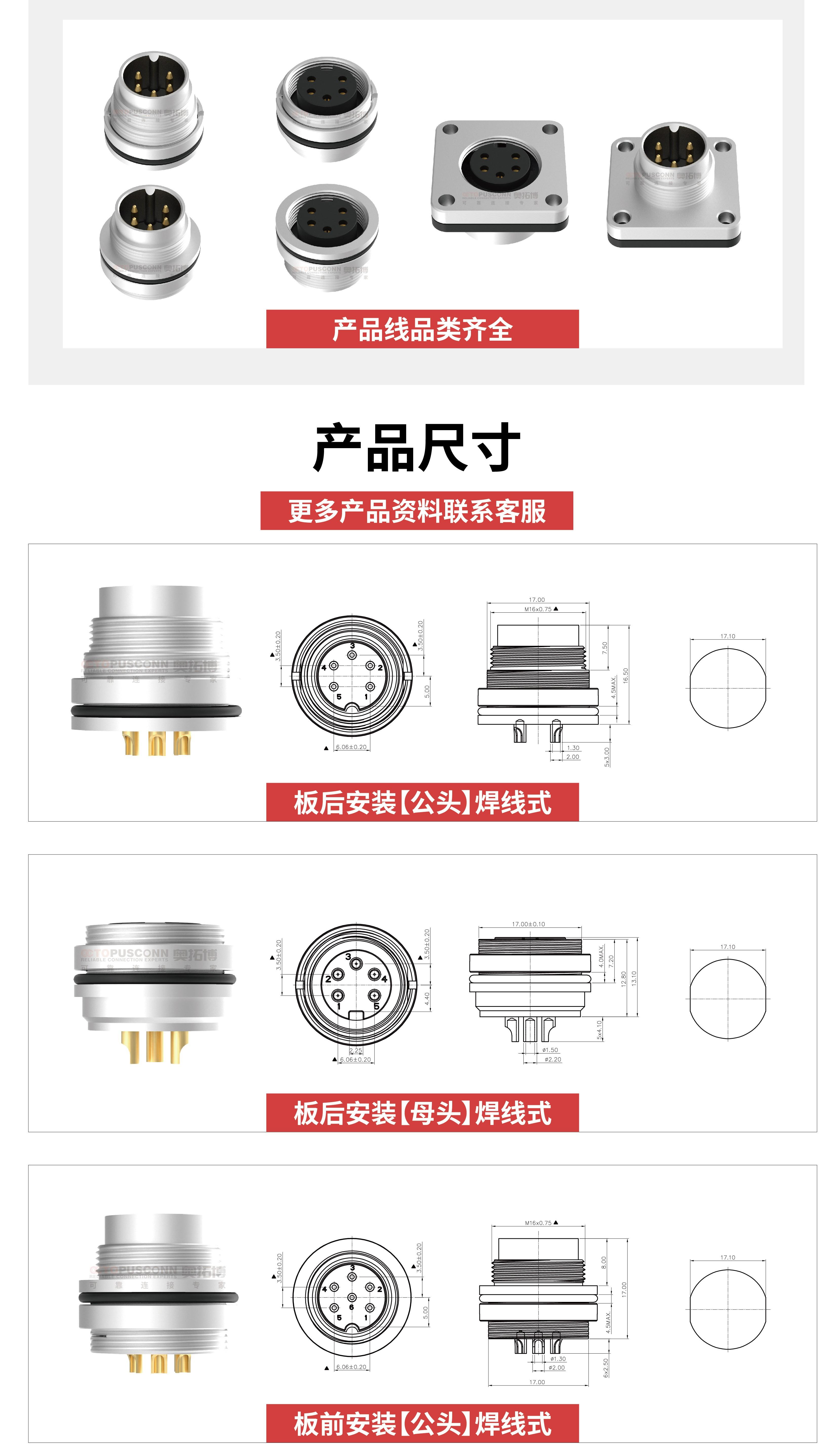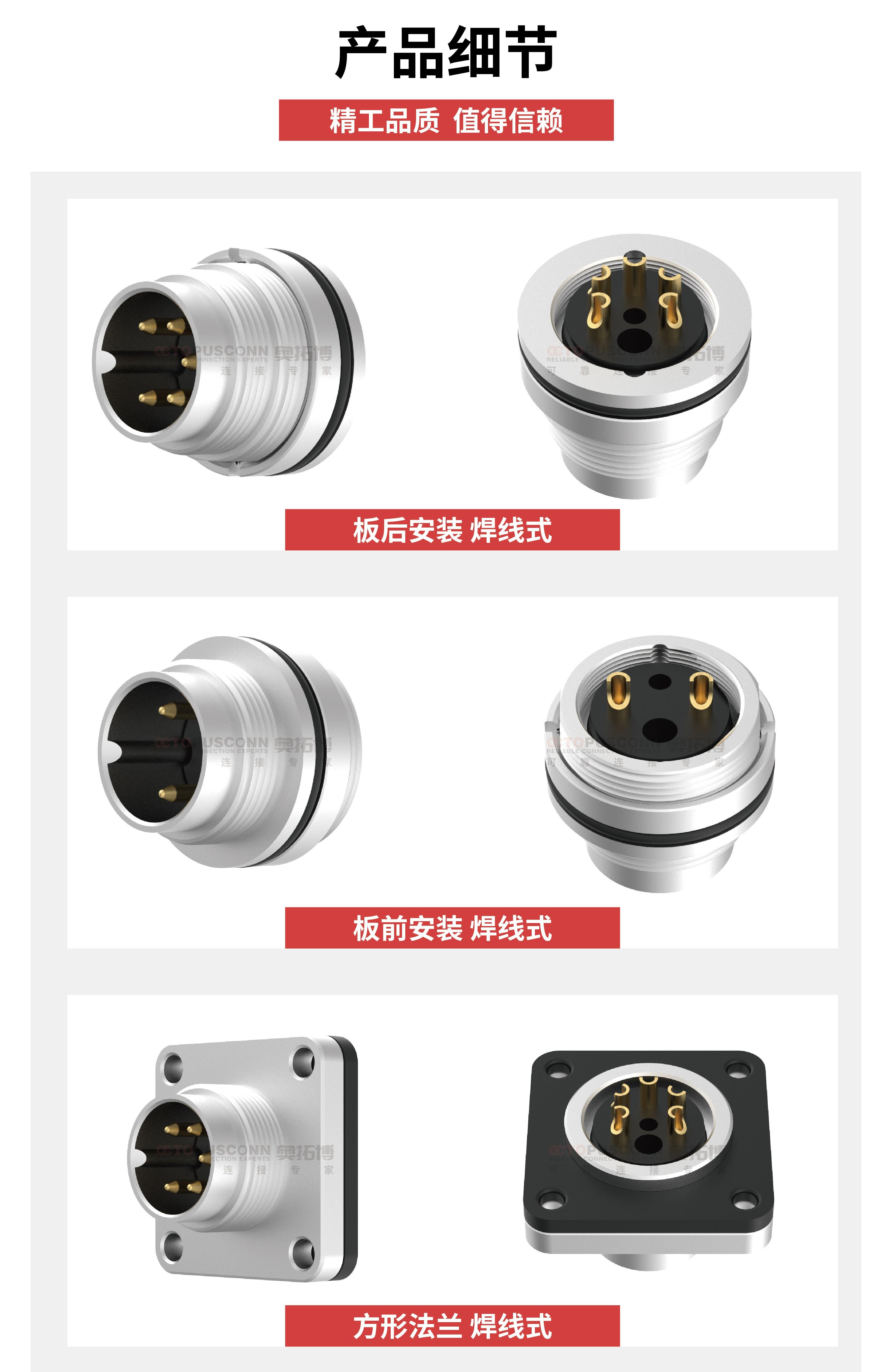 7-8焊线式针型孔型插座3芯4针5pin防水连接器板前板后航空插头