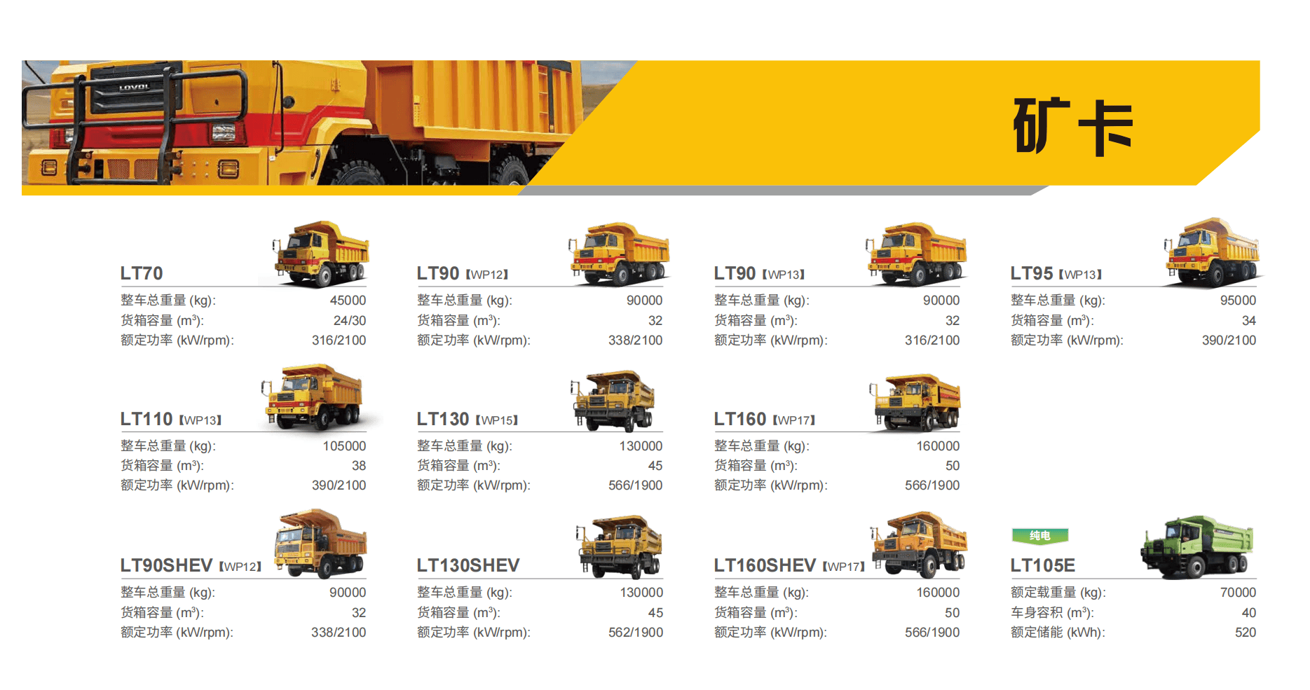 潍柴宽体自卸车目前共开发了90吨、95吨、105吨、110吨、120吨、130吨、160吨7个产品平台,涉及燃油版和纯电/增程等新能源版本。