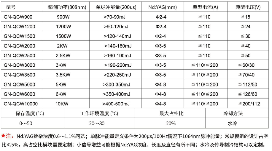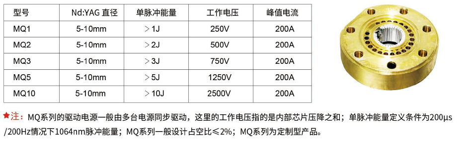 二、MQ系列,焦耳级准连续/脉冲半导体泵浦激光器模组: