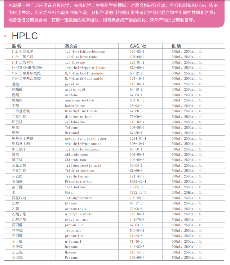 色谱溶剂—制备级