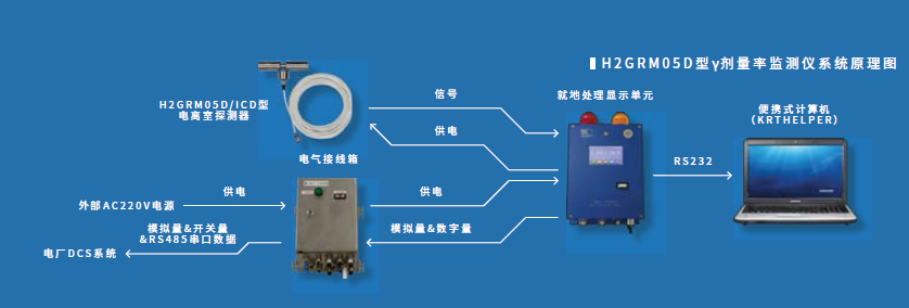 H2GRM05D型Y剂量率监测仪可连续监测特定部位的γ辐射剂量率,主要适用于核电站核燃料厂房地坑及核辅助厂房地坑等高放液体放射性活度的监测,及时获取被测对象的放射性水平信息。主要由H2GRM05D/ICD型差分电离室探测器、带窗铅屏蔽体、H2LPDU01-B型就地处理显示单元以及H2EJB11型电气接线箱等部件组成。