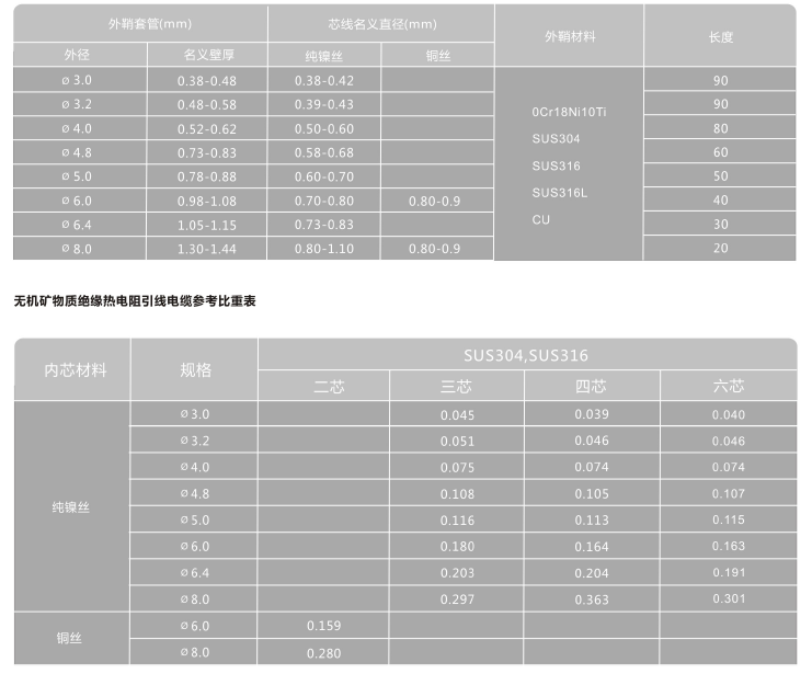 1、在合同或订货单上必须注明无机矿物质绝缘引线材料、内芯数、外鞘直径、外鞘材料