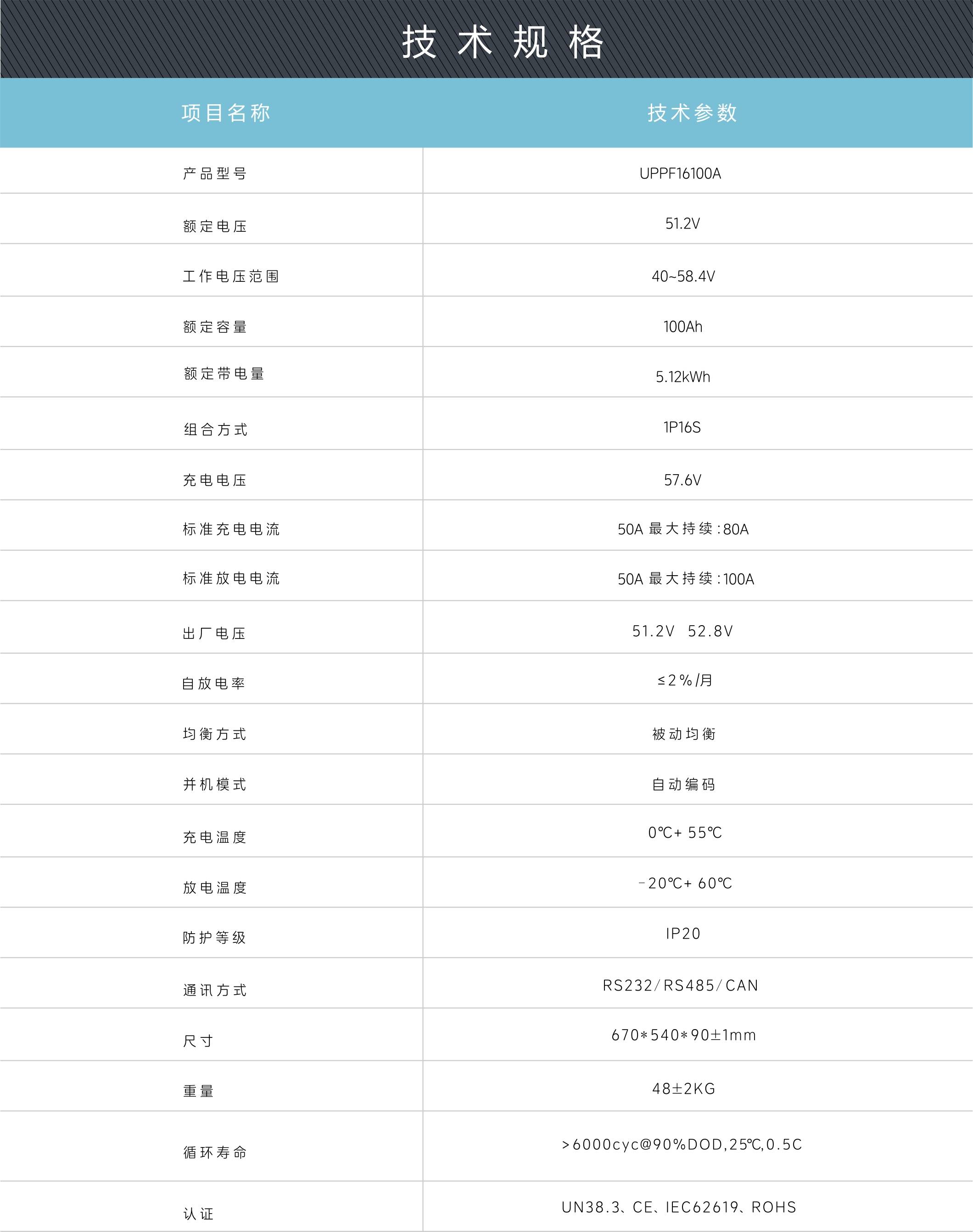 自动拨码并机,最大支持15组并联使用,应对大电量需求环境;IP20-IP65防护等级可选,循环次数>6000次:适配市场上主流品牌逆变器,为用户提供更多选择。