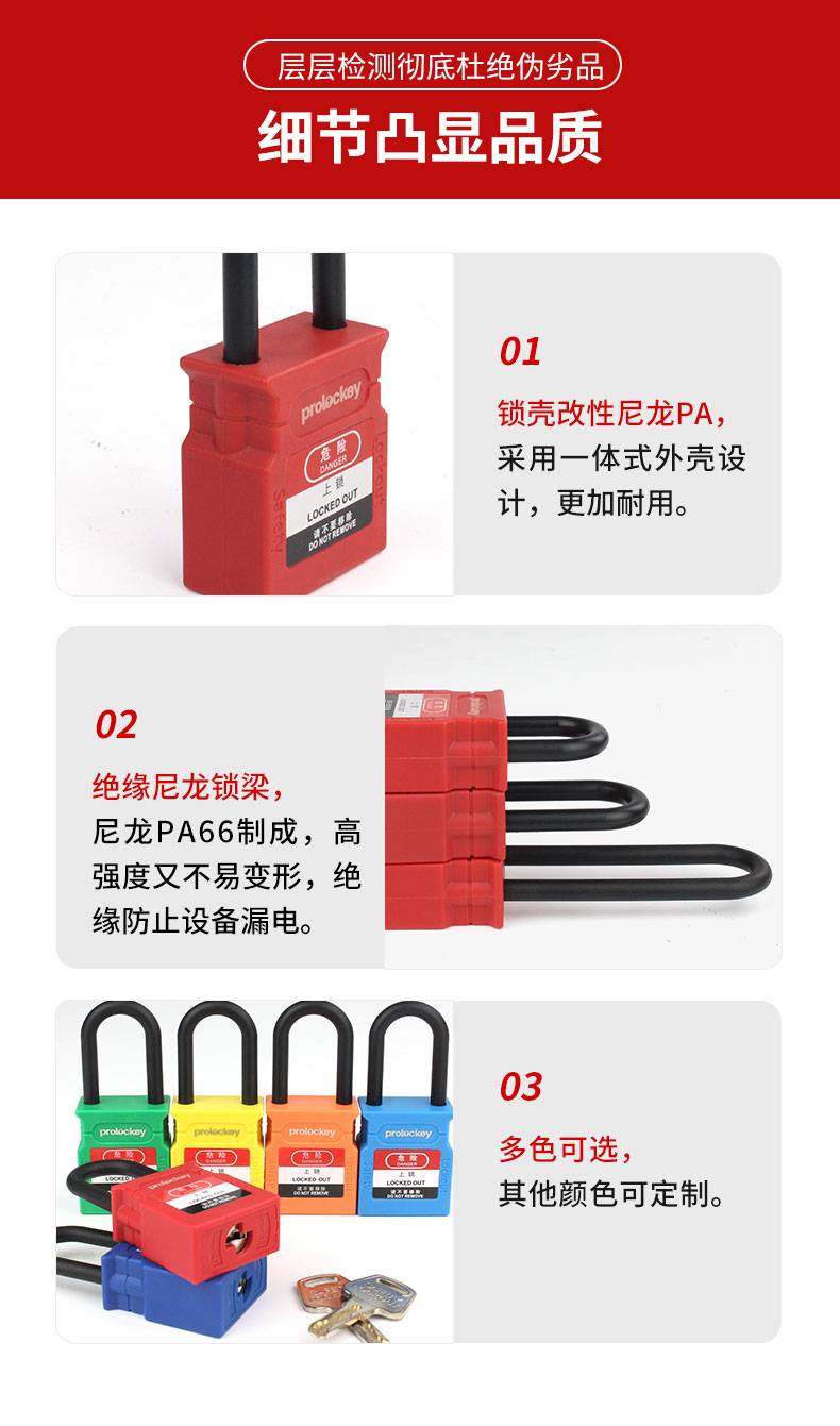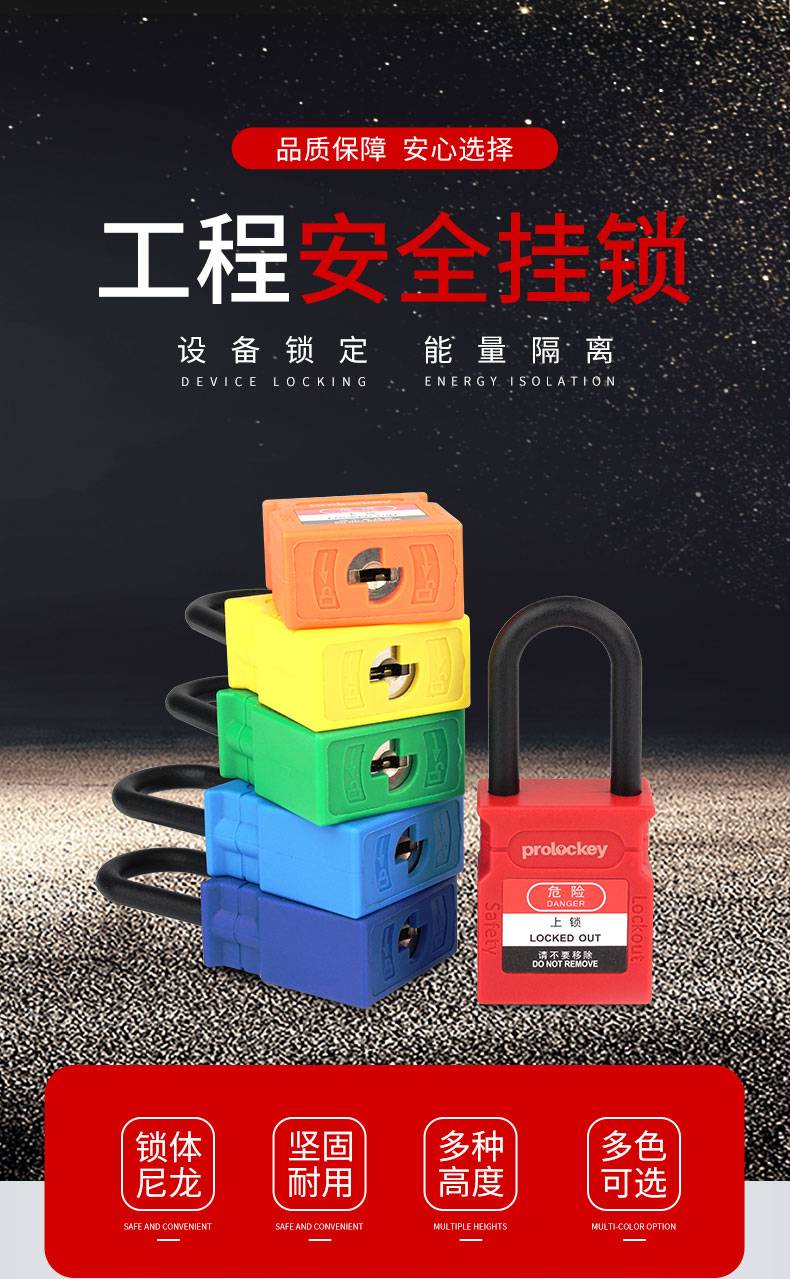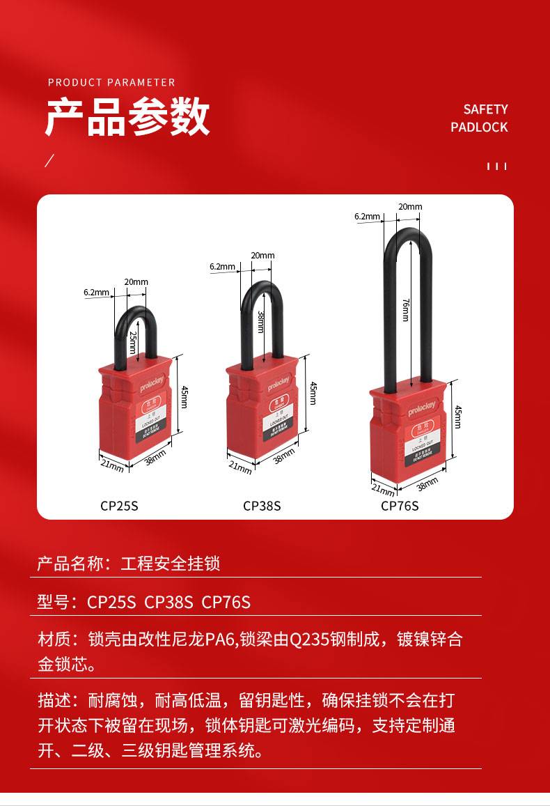 工程安全绝缘挂锁 CP38P 不同花(KD) & 同花(KA) 锁体宽度37mm 锁钩净高25 & 38 & 76mm 尼龙锁梁+尼龙锁壳