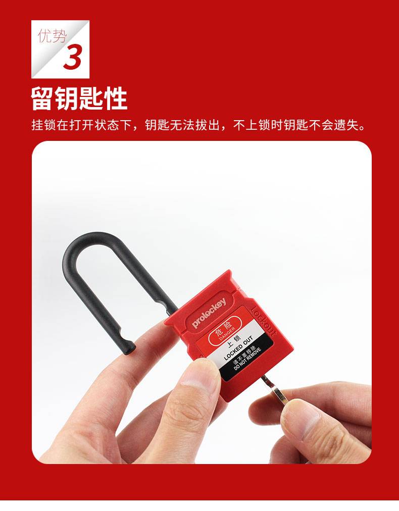 PROLOCKEY/洛科 迷你工程安全绝缘挂锁 PS25P 红色 不同花(KD) 锁体宽度32mm 锁钩净高25mm 尼龙锁梁+尼龙锁壳 含钥匙×2 1把
