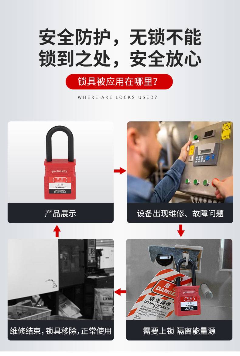 PROLOCKEY/洛科 电气手柄锁 PHL01 ABS 红色箍带:280mm(L)×25mm(W) 适用于柜门/电器手柄孔/低压抽屉柜等 1个
