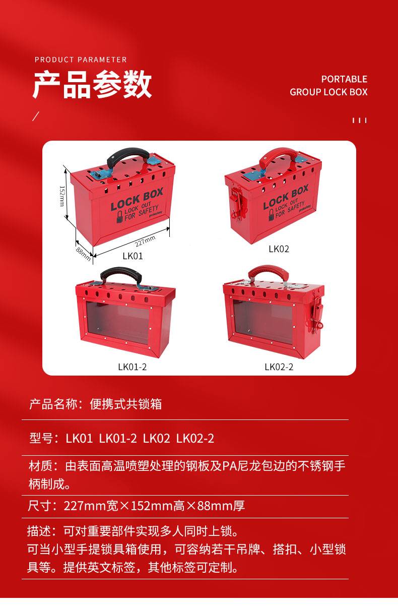 PROLOCKEY/洛科 便携式共锁箱 LK01 红色 227×152×88mm 可挂12把挂锁 不含配件 1个