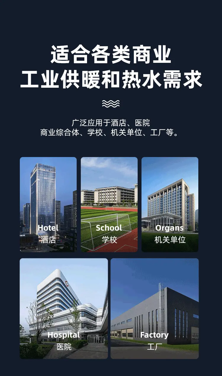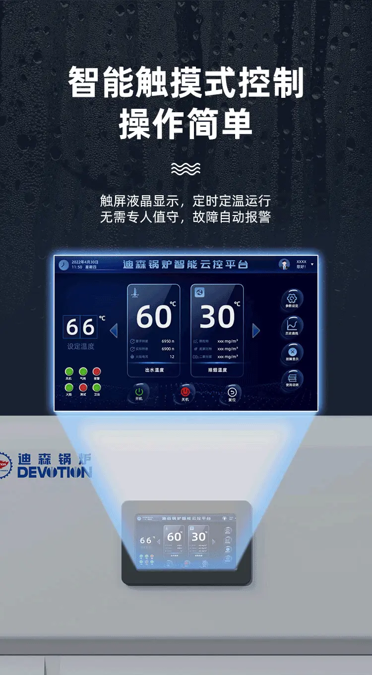 迪森锅炉自主研发产品全预混冷凝热水锅炉,以高效先进的全预混燃烧技术保证了能源的充分利用,低氮环保,运行稳定;内部316L不锈钢换热器,防腐抗垢,热效率高;采用智能控制系统,定时定温,自我检测,安全方便。广泛适用于住宅楼小区、学校、商用办公楼,各大商城以及大型工商业服务型建筑供暖、热水等。
