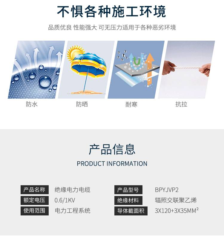 BPYJVP2绝缘电力电缆额定电压(0.6/1KV)低烟无卤工程建设用电缆