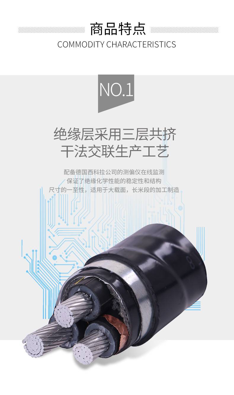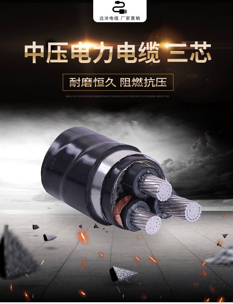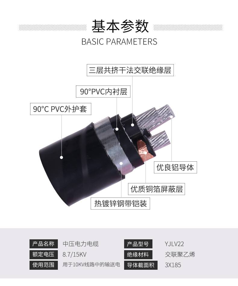 YJLV22三芯中压电力电缆 额定电压(8.7/15KV)