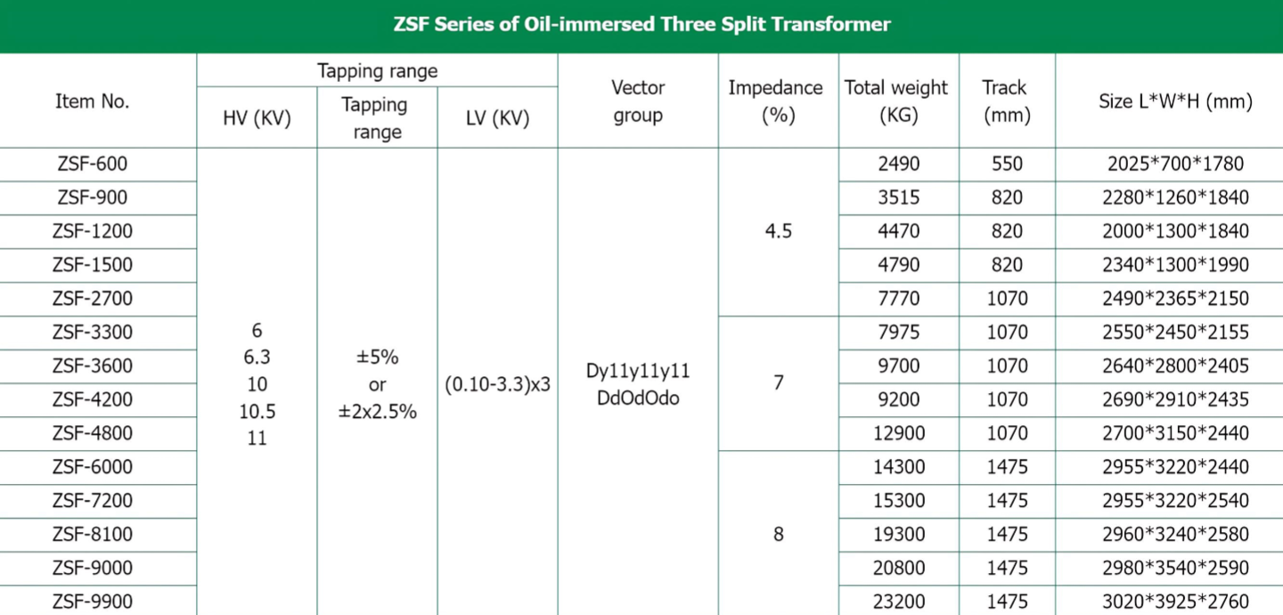 ZSF系列油浸式三分裂变压器是一款专用高性能变压器,专为需要高电压和电流调节的工业和商业应用而设计。该变压器采用独特的三分裂铁芯设计,通过增强负载分配和降低铁芯损耗来提高性能。其油浸式结构提供卓越的绝缘和高效的冷却,能够有效延长变压器的使用寿命,并减少维护成本,使其适合在苛刻的环境中高负荷连续运行。ZSF 系列变压器广泛应用于配电、工业自动化和大规模制造,具有可靠性、效率和长期服务的特点。ZSF系列油浸式三分裂变压器提供无与伦比的效率、可靠性和灵活性。无论是工业自动化、电网还是可再生能源系统,ZSF 变压器都能提供您所需的强大、持久的性能。