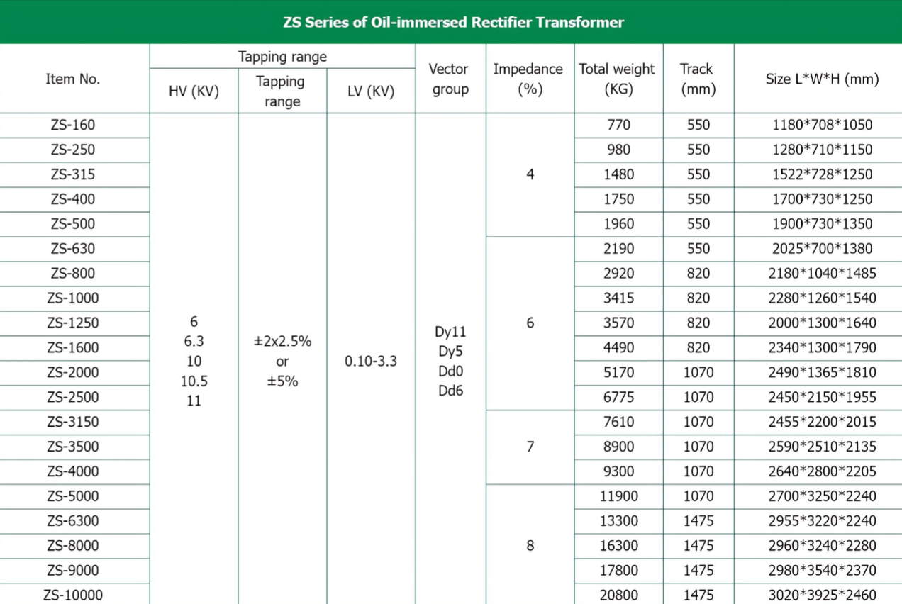 宽电压和电流额定值:ZS 系列变压器具有各种电压和电流额定值,适用于从低功率系统到大规模高功率应用的各种整流器应用。