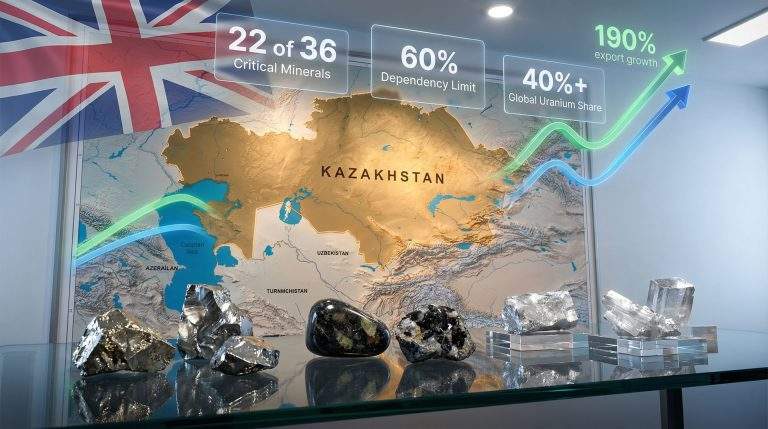 英国引入了60%的单一国家依赖上限作为监管基准,要求政府合同必须实现供应商多元化,防止过度依赖特定国家。哈萨克斯坦作为重要伙伴,生产英国所需36种关键矿产中的22种,包括铀、钛、铜和锌等资源。该国拥有大量未开发矿床,稀土氧化物储量估计在700至1200万吨之间。