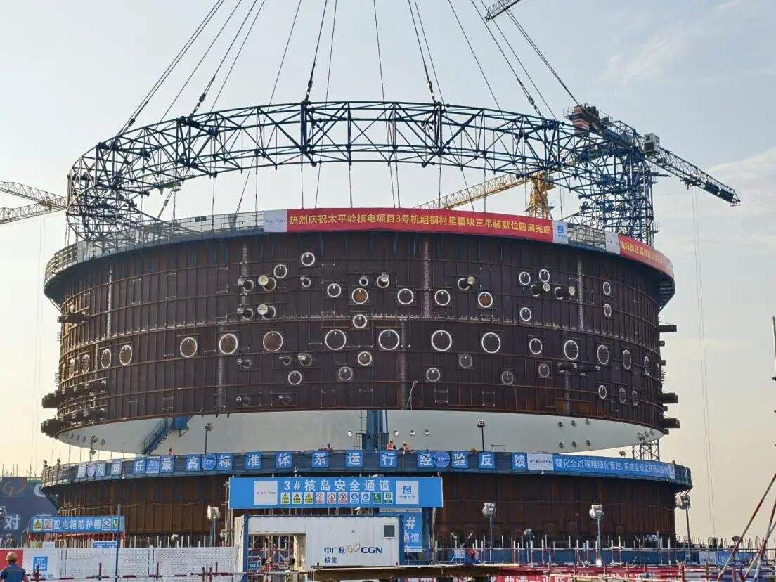 1月18日,太平岭核电项目3号机组安全壳钢衬里模块三顺利吊装。