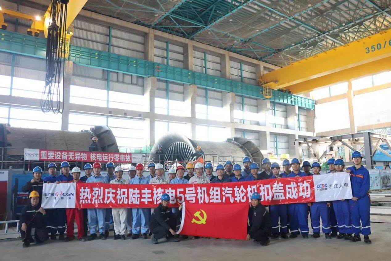 2月11日,陆丰核电项目5号机组汽轮机内缸扣盖完成。
