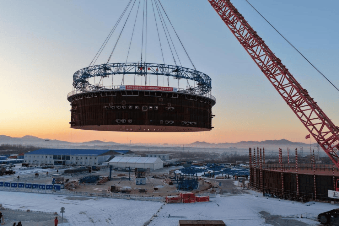 2月8日,山东招远核电项目1号机组,反应堆厂房钢衬里模块二顺利完成吊装。