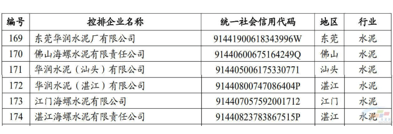 在水泥行业,六家企业被列入控排名单,包括东莞华润水泥厂有限公司、佛山海螺水泥有限责任公司、华润水泥(汕头)有限公司、华润水泥(湛江)有限公司、江门海螺水泥有限公司和湛江海螺水泥有限责任公司。这些企业的纳入标志着广东省在水泥行业碳排放控制方面的进一步举措。