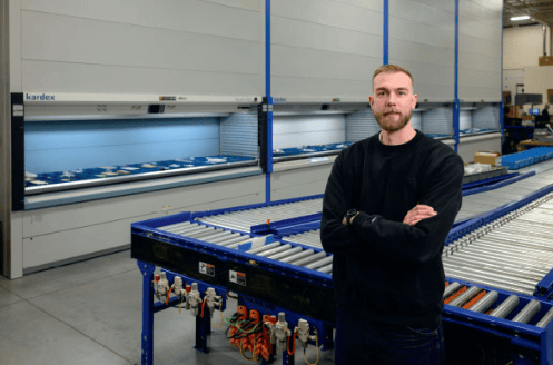 Koepp指出:“垂直升降模块对仓库效率产生了连锁效应。安装后,我们释放了空间,得以构建输送系统并更新接收区域。”输送系统以四台VLMs为中心,支持批量拣选流程,每批处理12个订单,通过LED导航栏和激光指针指导工人,确保准确性。