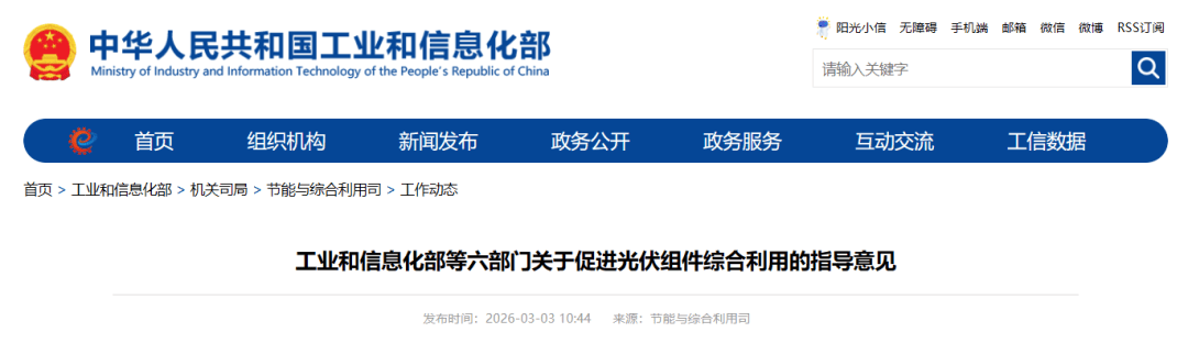 工业和信息化部等六部门关于促进光伏组件综合利用的指导意见