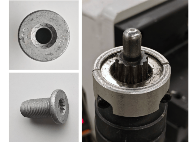 在汽车工厂的测试中,小米机器人展示了其处理复杂装配任务的能力。它需要从自动送钉设备中抓取自攻螺母,并将其精确放置到定位工装上,配合滑台输送和自动定位锁定,完成汽车一体化压铸后地板零件的自动化拧紧作业。自攻螺母内侧的花键结构、抓取姿态的不固定性以及定位销轴的磁吸力影响,都增加了装配的难度。