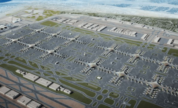 马克图姆国际机场扩建项目是迪拜航空基础设施的关键工程,计划分三个阶段进行。机场将占地70平方公里,位于迪拜南部,配备五条平行跑道、五座航站楼和400个飞机登机口,年旅客处理能力达2.6亿人次,货运能力1200万吨。该项目于2014年启动,最新设计方案在2024年4月获批,目标到2050年建成全球最大机场。谢赫·穆罕默德·本·拉希德·阿勒马克图姆殿下审查了战略计划并批准了航站楼设计,他表示:“今天,我们批准了马克图姆国际机场即将建设的机场航站楼设计方案,并以1280亿迪拉姆(350亿美元)的成本启动建设工作,这是迪拜航空集团战略的一部分。”