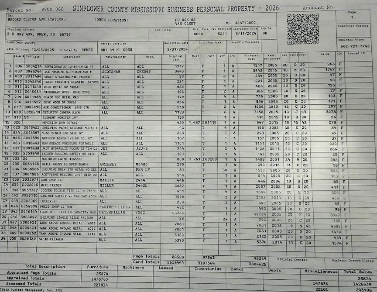 约翰·保罗·布鲁克斯,密西西比州休斯敦布鲁克斯定制应用公司的所有人,在2025年收到了一份惊人的税单。他的农场商店评估额在一年内从大约1万美元飙升至5万美元,增幅高达400%。