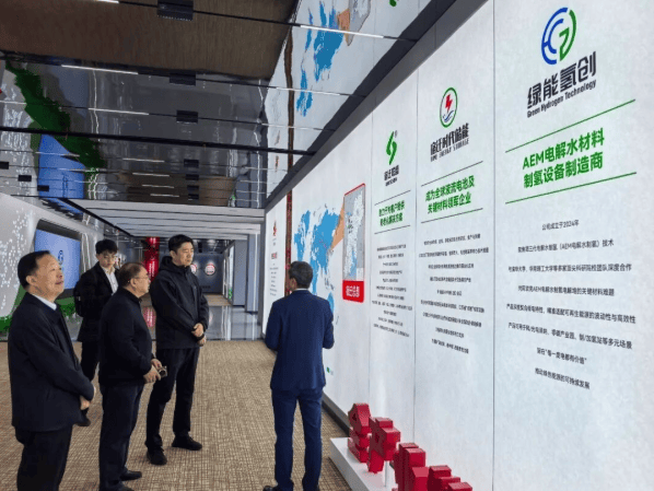 项瞻波陪同考察团查看了生产车间,包括一条大宽幅阴离子交换膜生产线。任万伟重点关注了电解水制氢材料的研发进展。项瞻波介绍,基于阴离子交换膜(AEM)技术,公司已覆盖从材料到膜电极的产业链环节,正推进AEM电解槽制氢装置的示范应用。这项技术融合了低成本和高响应性,适用于可再生能源制氢。任万伟表示:“鼓励企业加快核心技术攻关,支持区域氢能产业发展。”