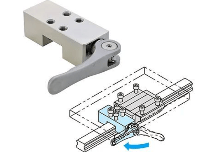 在工业应用中,线轨限位器通过弹簧力夹紧,确保了夹紧力的稳定性,无需担心夹紧力波动问题。其凸轮手柄结构使得开/关状态一目了然,简化了日常维护和检查。设置完成后,手柄不突出,进一步提升了安全性和空间利用率,适合高密度生产线或有限空间的作业环境。