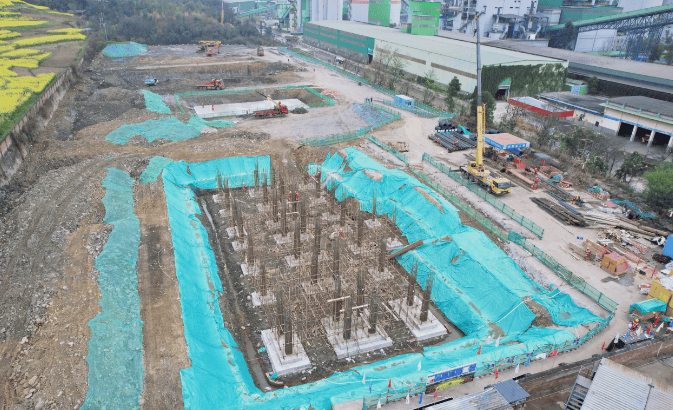 据现场了解,综合楼区域钢筋绑扎与混凝土浇筑交叉进行,主机楼基础施工稳步推进,皮带廊架配套设施安装同步展开。都投拉法基新型建材(都江堰)有限公司总经理施李介绍:"正月初八即全面复工,目前倒排工期、挂图作战,全力抢时间、赶进度。"截至目前,项目已完成土石方开挖约10万立方米,场平大开挖及综合楼基础浇筑全面完工,骨料砂库设备改造搭接、转运廊架基础施工就绪,总体进度达21%。