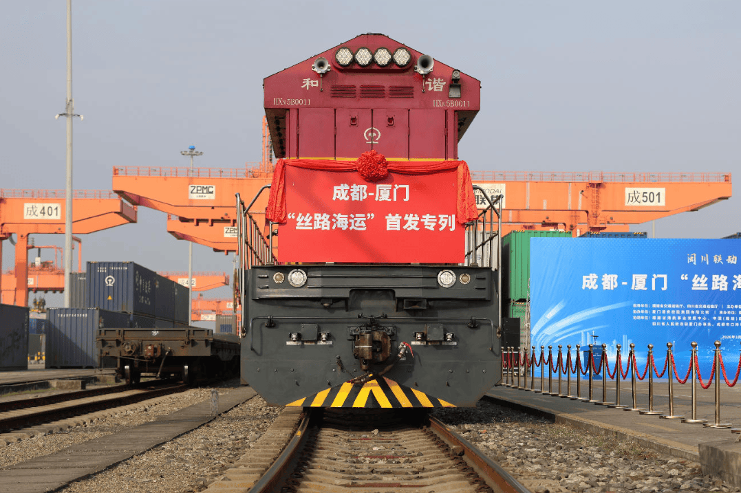 本次首发专列满载四川本地特色货品,从成都城厢站始发,经铁路直达厦门前场站,在厦门港换装国际班轮后,通过海运直达东南亚和中国台湾地区,实现铁路运输、港口中转、国际海运全程无缝衔接,构建起西部内陆南向出海高效、稳定、便捷的物流新路径。