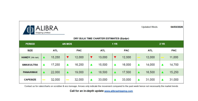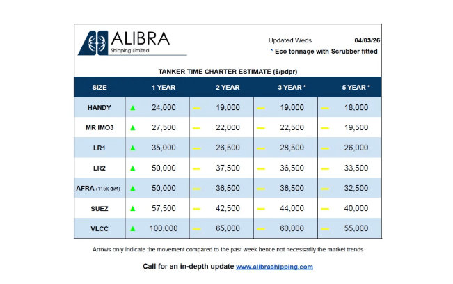 Alibra Shipping近日发布了最新的油轮和干散货船运价周报,为全球航运市场提供租船费率的定期更新。这份报告涵盖了多种船型的数据,旨在反映当前国际运输成本的变化趋势。