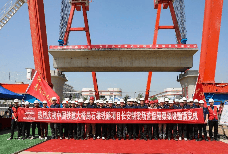 中国河北石雄铁路项目首榀箱梁架设完成转入上部结构施工