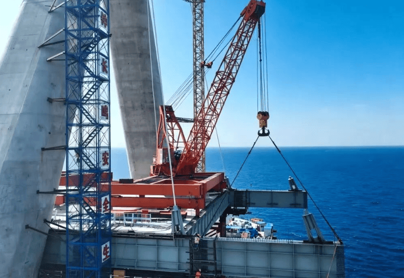 中国黑龙江哈尔滨松花江特大桥备用航道桥完成首吊