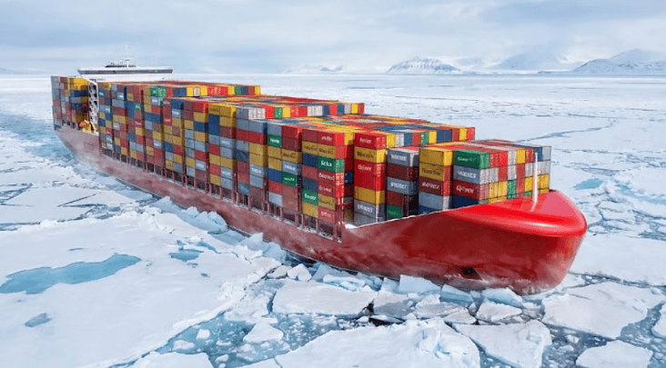 俄罗斯联合造船公司(USC)的设计团队近日公布了一款新型集装箱船的概念图像,该船专为适应北方海路的航行条件而设计。北方海路是连接亚洲和欧洲的一条北极航运走廊,全长约5,600公里,被视为两地间最短的海上通道。