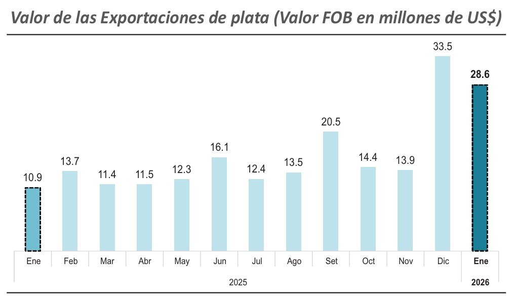 秘鲁2026年1月白银出口增162.6%至2900万美元