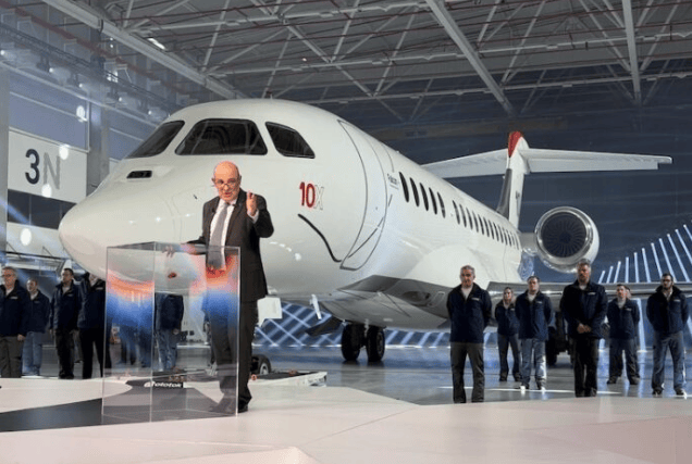 在法国达索航空的波尔多-梅里尼亚克工厂,猎鹰10X公务机向超过400名客户和航空业代表展示,标志着这一超远程公务机项目的关键进展。先进复合材料制造商Hexcel为猎鹰10X提供了全复合材料机翼,这被描述为公务航空领域的创新应用。