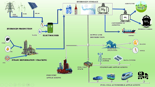 在工业脱碳中,氢气用作还原剂和原料,例如在钢铁制造中通过氢基直接还原铁矿石可实现90-95%的减排。燃烧和燃料电池技术方面,氢内燃机和无焰燃烧概念正优化效率与排放,而PEM燃料电池因其高效率和紧凑性主导市场,应用于汽车和固定电力系统。Rengarajan博士强调:“氢能技术的多元宇宙正沿着脱碳、多样化和数字化轴扩展,燃料电池作为旗舰转换技术,其与生产、基础设施的互动对全球能源转型至关重要。”氢能技术的持续创新将支撑其在清洁能源系统中的广泛应用。