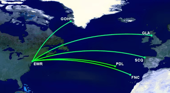 美联航的波音737 MAX跨大西洋航线网络包括纽瓦克至丰沙尔、格拉斯哥、努克、蓬塔德尔加达和圣地亚哥德孔波斯特拉,所有航线均由MAX 8机型执飞,频率从每周两班到每日一班不等。尽管波音737 MAX航班数量上升,但仅占公司跨大西洋总服务的2.6%,日均110.5班中大部分由777-200ER和767-300ER等宽体机承担。