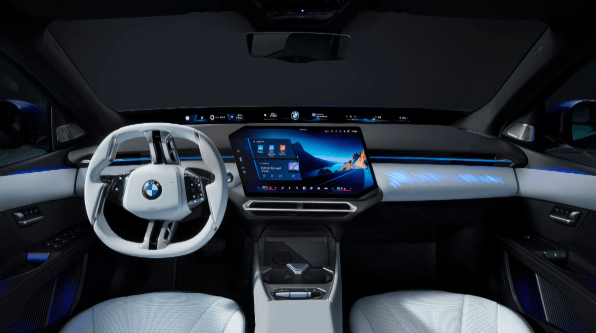内饰方面,新款i3引入全景视觉显示,将信息投射到挡风玻璃底部,方向盘设计革新,采用Shy Tech技术按钮。车辆支持车对负载、车对家和车对电网功能,北美版本配备NACS充电端口。800伏平台支持最高400千瓦充电功率,电池预调节可通过软件自动激活。