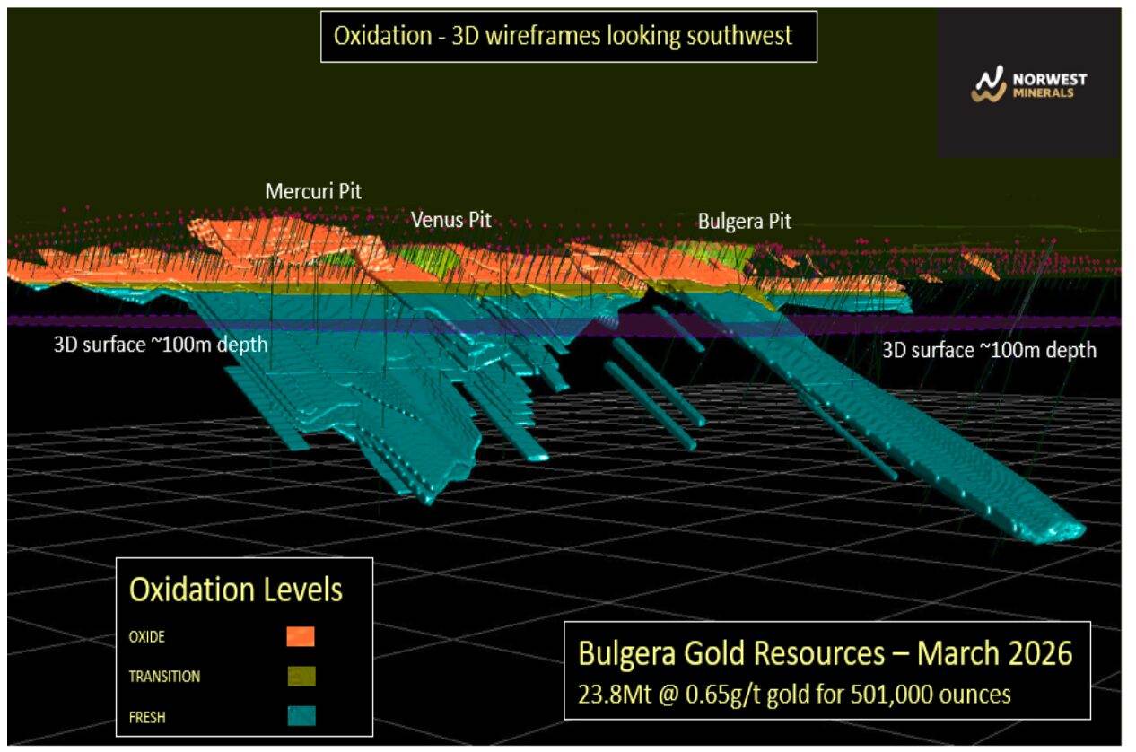 Norwest Minerals近日宣布,其位于澳大利亚西澳大利亚州Murchison地区的Bulgera黄金项目资源量大幅提升74%,达到501,000盎司。这一升级基于2025年两阶段反循环钻探的积极结果,同时公司将金矿边界品位从0.6克/吨调整至0.24克/吨,以适应当地堆浸标准和市场条件。