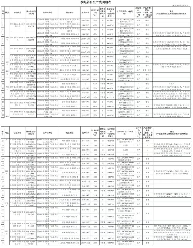 另有未投产水泥生产线1条:叙永红狮水泥有限公司6000t/d熟料新型干法水泥生产线;未建设水泥生产线1条:巴塘卓帆水泥有限责任公司2500t/d熟料新型干法水泥生产线。四川省通过产能置换和结构调整,持续推进水泥行业转型升级。此次公示清单反映了全省水泥生产线的产能布局现状,为行业管理和规划提供了基础数据。